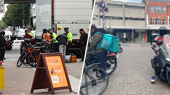 Officers were seen in Southend High Street recently stopping and confiscating illegal e-bikes used by riders believed to work for Just Eat and Deliveroo. Several were found to be using unregulated bikes with modified motors or throttle systems, which are illegal to ride without registration, insurance and a licence.